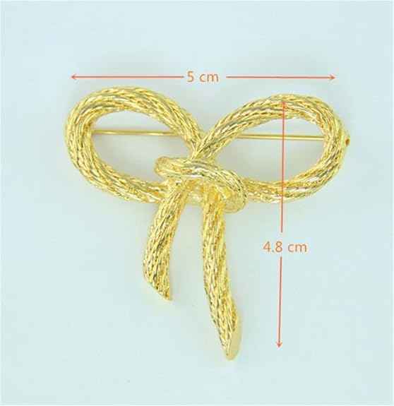 This gold bow brooch features a beautifully sculpted 3D ribbon knot design, symbolizing grace and femininity. Crafted to resemble braided metallic strands, the surface texture delivers a tactile, intricate finish, while the polished gold-tone plating provides a radiant, luxurious shine that resists fading.