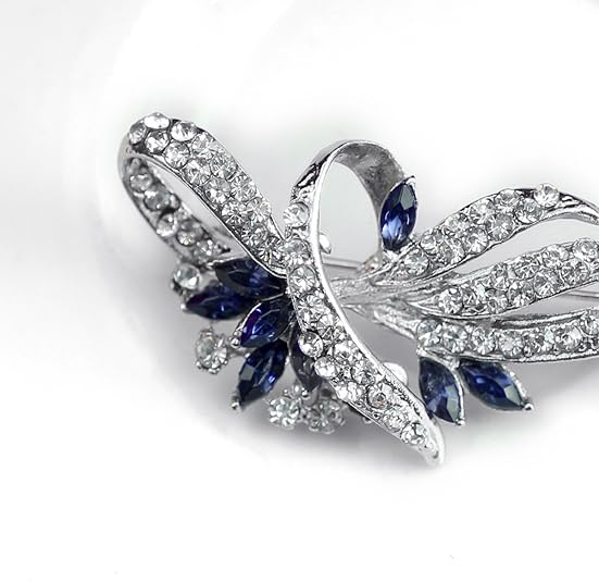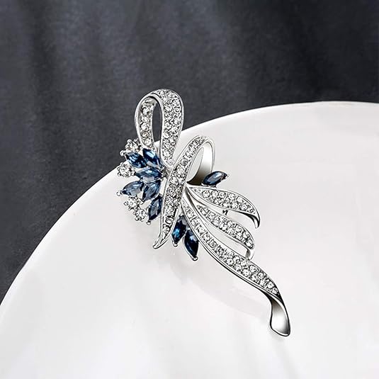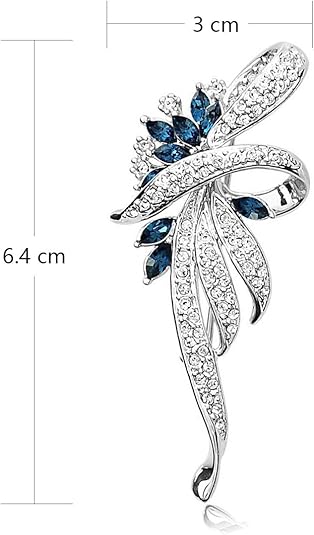 Elegant Leaf Design Brooch for Women – Silver-Tone Crystal Rhinestone Pin with Sapphire Accents