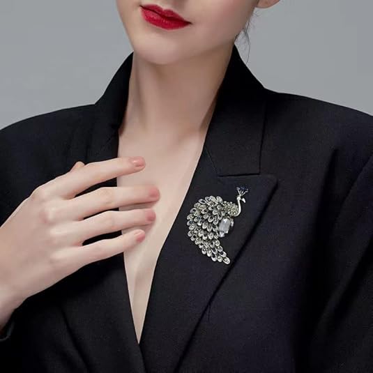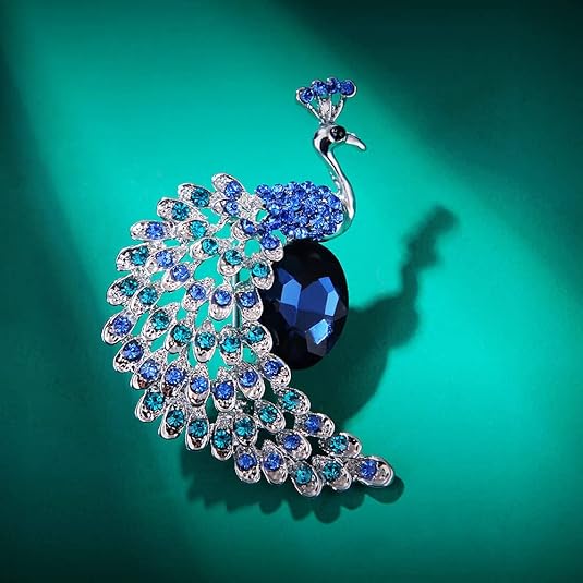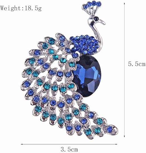 This elegant peacock brooch combines classic Eastern symbolism with modern Western glamour, capturing the magnificent display of a peacock’s open feathers. Crafted from high-quality silver-tone alloy, the brooch features a polished finish for lasting brilliance and resistance to tarnish. The wings are intricately adorned with layered rows of shimmering rhinestones in peacock blue and turquoise hues, creating a captivating fan-like display that dazzles under light.