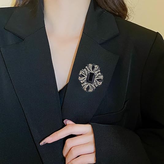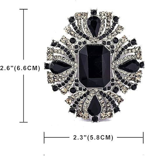 Vintage Gothic Black Gemstone Brooch – Retro Baroque Style Pin with Crystals for Dress, Shawl & Accessories