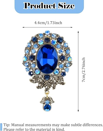 A small dangling crystal pendant at the bottom brings movement and softness, enhancing the brooch's charm. Made with a durable alloy and finished in antique gold tone, this brooch combines regal color with exquisite craftsmanship.
