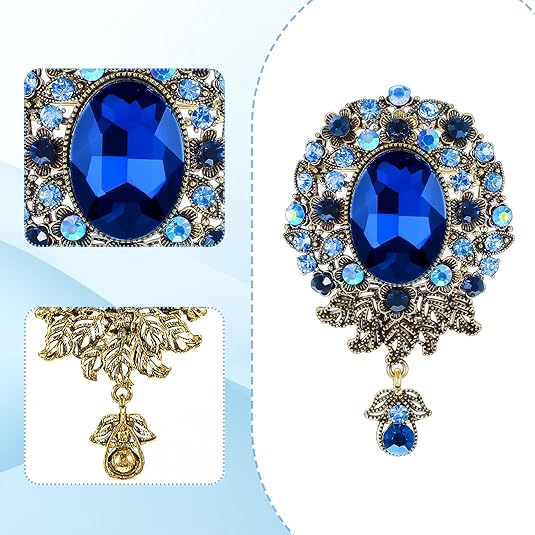 Add a touch of elegance and royalty to your outfit with this stunning vintage sapphire brooch. At the center lies a large oval-cut royal blue crystal that sparkles under any light. Surrounded by a circle of dazzling small blue rhinestones and iridescent gems, the brooch reflects a refined European court style.